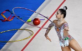 Championship of Russia in rhythmic gymnastics in the individual program. The final of the individual all-around at the Irina Viner-Usmanova Gymnastics Palace. Gymnast Lidia Chernysheva performing.