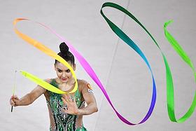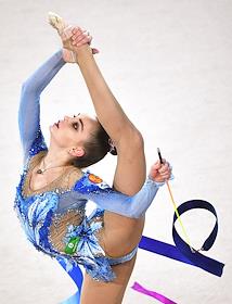 Championship of Russia in rhythmic gymnastics in the individual program. The final of the individual all-around at the Irina Viner-Usmanova Gymnastics Palace. Gymnast Lala Kramarenko performing.