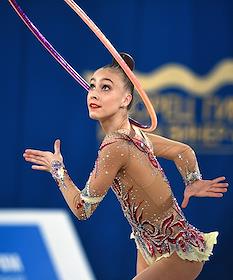Championship of Russia in rhythmic gymnastics in the individual program. The final of the individual all-around at the Irina Viner-Usmanova Gymnastics Palace. Gymnast Arina Averina performing.