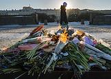 Акция в знак поддержки мира. Цветы у Вечного огня на Марсовом поле.