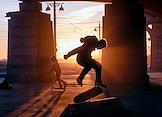 Жанровая фотография. Скейтеры во время катания под эстакадой Ушаковской автомобильной развязки.