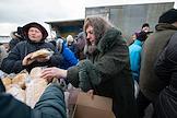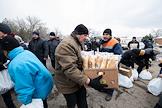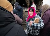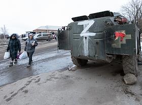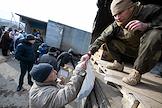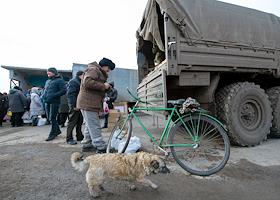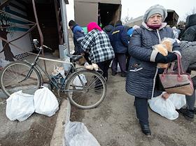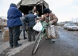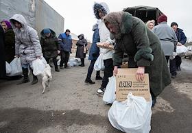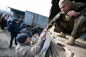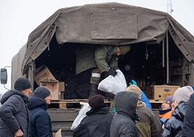 Раздача гуманитарной помощи военнослужащими и волонтерами ДНР в освобожденном селе Анодоль.