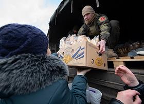 Политическая обстановка в Донецкой Народной Республики (ДНР) в период проведения специальной военной операции Вооруженных Сил России на Украине. Раздача гуманитарной помощи военнослужащими и волонтерами ДНР жителям освобожденного села Анодоль.