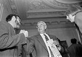 Пресс-конференция "РТВ-пресс". Главный редактор "Общей газеты" Егор Яковлев (в центре)перед началом пресс-конференции.