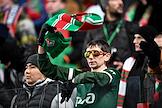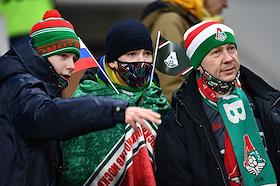 Российская Премьер-Лига (РПЛ). Тинькофф - Чемпионат России по футболу 2021/2022. 21-й тур. Матч между командами "Локомотив" (Москва) - ЦСКА (Москва) на стадионе "РЖД Арена". Болельщики команды "Локомотив" на трибуне во время матча.