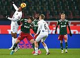 Российская Премьер-Лига (РПЛ). Тинькофф - Чемпионат России по футболу 2021/2022. 21-й тур. Матч между командами "Локомотив" (Москва) - ЦСКА (Москва) на стадионе "РЖД Арена". Игроки команды "Локомотив" Даниил Худяков (второй слева), Мацей Рыбус (справа) и игрок команды ЦСКА Юсуф Языджи (второй справа) во время матча.