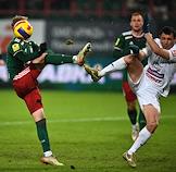 Российская Премьер-Лига (РПЛ). Тинькофф - Чемпионат России по футболу 2021/2022. 21-й тур. Матч между командами "Локомотив" (Москва) - ЦСКА (Москва) на стадионе "РЖД Арена". Игрок команды ЦСКА Алан Дзагоев (справа) во время матча.