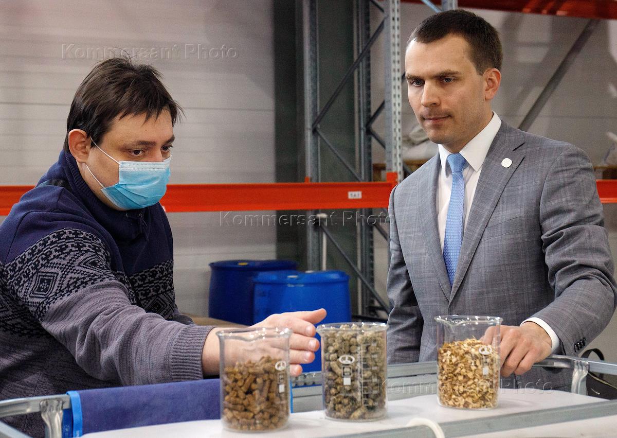 Работа научно-производственного объединения (НПО) "БиоМикроГели". Генеральный директор НПО "БиоМикроГели" Андрей Елагин (справа) в производственном цехе.