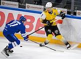 Континентальная хоккейная лига (КХЛ). Чемпионат сезона 2021/22. 1/4 финала - Запад. Матч между командами "Динамо" (Москва) - "Северсталь" (Череповец) на стадионе "ВТБ Арена". Игрок команды "Северсталь" Якоб Стенквист (справа) и игрок команды "Динамо" Александр Петунин (слева) во время матча.