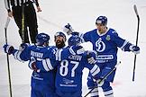 Континентальная хоккейная лига (КХЛ). Чемпионат сезона 2021/22. 1/4 финала - Запад. Матч между командами "Динамо" (Москва) - "Северсталь" (Череповец) на стадионе "ВТБ Арена". Игроки команды "Динамо" после окончания матча.