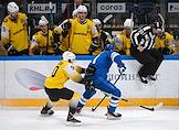 Континентальная хоккейная лига (КХЛ). Чемпионат сезона 2021/22. 1/4 финала - Запад. Матч между командами "Динамо" (Москва) - "Северсталь" (Череповец) на стадионе "ВТБ Арена". Игрок команды "Северсталь" Игорь Гераськин (в центре) во время матча.