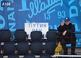 Континентальная хоккейная лига (КХЛ). Чемпионат сезона 2021/22. 1/4 финала - Запад. Матч между командами "Динамо" (Москва) - "Северсталь" (Череповец) на стадионе "ВТБ Арена". Зритель на трибуне перед началом матча.