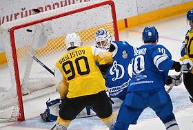 Континентальная хоккейная лига (КХЛ). Чемпионат сезона 2021/22. 1/4 финала - Запад. Матч между командами "Динамо" (Москва) - "Северсталь" (Череповец) на стадионе "ВТБ Арена".