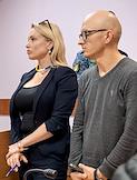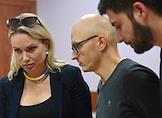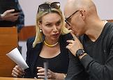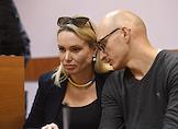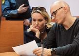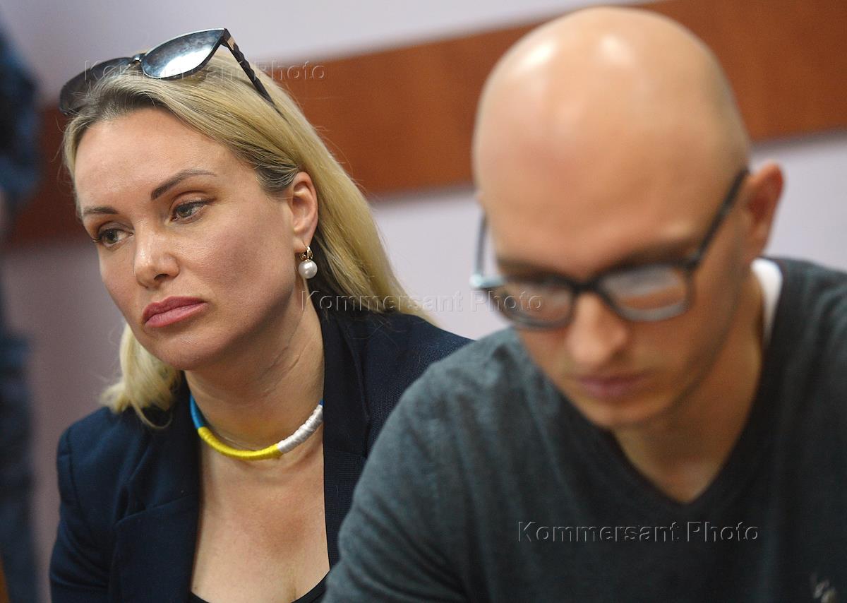Заседание по административному делу редактора "Первого канала" Марины Овсянниковой, обвиняемой по статье 20.2 КоАП РФ "Нарушение установленного порядка организации либо проведения собрания, митинга, демонстрации, шествия или пикетирования", в Останкинском районном суде. Редактор "Первого канала" Марина Овсянникова (слева) и адвокат Антон Гашинский (справа) во время заседания суда.