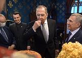 Церемония инаугурации международной программы "Казань – Молодежная столица Организации исламского сотрудничества (ОИС)-2022" в Доме приемов МИД России. Министр иностранных дел России Сергей Лавров (слева) и президент Республики Татарстан Рустам Минниханов (справа) во время церемонии.