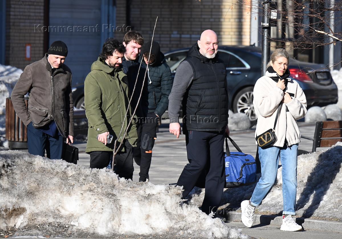 The sentencing of the former adviser to the head of the Federal Agency for Fisheries, Yuri Khokhlov, accused of fraud, in the Presnensky District Court. Former adviser to the head of the Federal Agency for Fisheries Yury Khokhlov (center) and lawyer Igor Zuber (second from right) after the meeting.