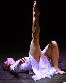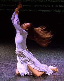 XXVIII фестиваль Российской национальной театральной премии "Золотая маска". Спектакль "hAVA" казанской театральной площадки "MON" в новом зале театрально-культурного центра имени Вс. Мейерхольда. Режиссер-постановщик Туфан Имамутдинов, хореограф Марсель Нуриев. Артистка балета Айсылу Мирхафизхан во время спектакля.