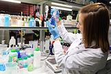 The work of the plant company "GRASS" for the production of auto chemicals, auto cosmetics, detergents for cleaning and household chemicals. Employees in the laboratory.