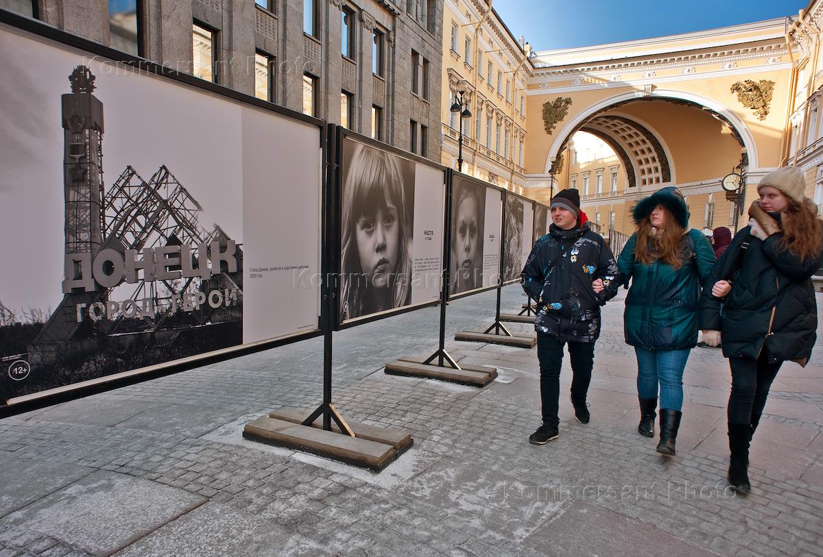 Жанровая фотография. Выставка "Дети Донбасса" на Большой Морской улице перед выходом на Дворцовую площадь.