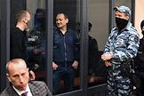 Рассмотрение апелляционной жалобы на приговор бывшим полицейским, признанных виновными в подбросе журналисту Ивану Голунову наркотиков в Первом апелляционном суде общей юрисдикции. Бывшие полицейские Акбар Сергалиев (в центре) и Максим Уметбаев (справа) на скамье подсудимых во время заседания суда.