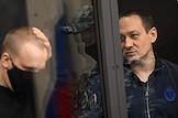Рассмотрение апелляционной жалобы на приговор бывшим полицейским, признанных виновными в подбросе журналисту Ивану Голунову наркотиков в Первом апелляционном суде общей юрисдикции. Бывшие полицейские Роман Феофанов (слева) и Игорь Ляховец (справа) на скамье подсудимых во время заседания суда.