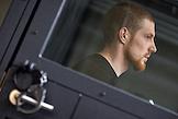 Рассмотрение апелляционной жалобы на приговор бывшим полицейским, признанных виновными в подбросе журналисту Ивану Голунову наркотиков в Первом апелляционном суде общей юрисдикции. Бывший полицейский Максим Уметбаев во время заседания суда.