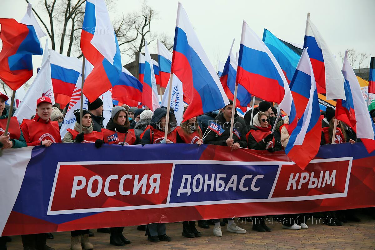 Концерт-митинг, посвященный дню воссоединения Республики Крым с Россией, в парке Левобережный. Участники во время концерта-митинга.
