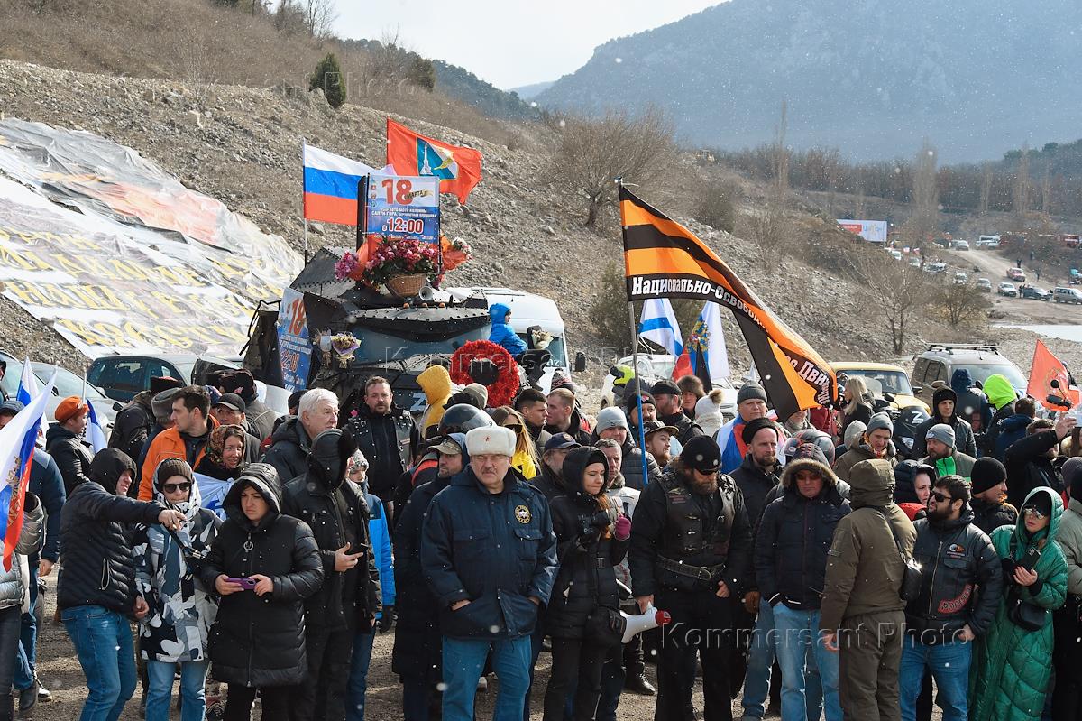 Праздничные мероприятия, посвященные Дню воссоединения Республики Крым с Россией. Участники автопробега.