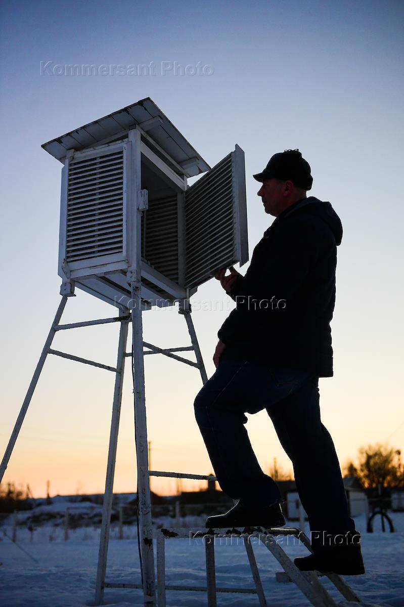 Жанровые фотографии. Работа агрометеостанции "Огурцово" в поселке Элитном под Новосибирском. Термограф.