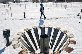 Жанровые фотографии. Работа агрометеостанции "Огурцово" в поселке Элитном под Новосибирском. Анемометр чашечный.