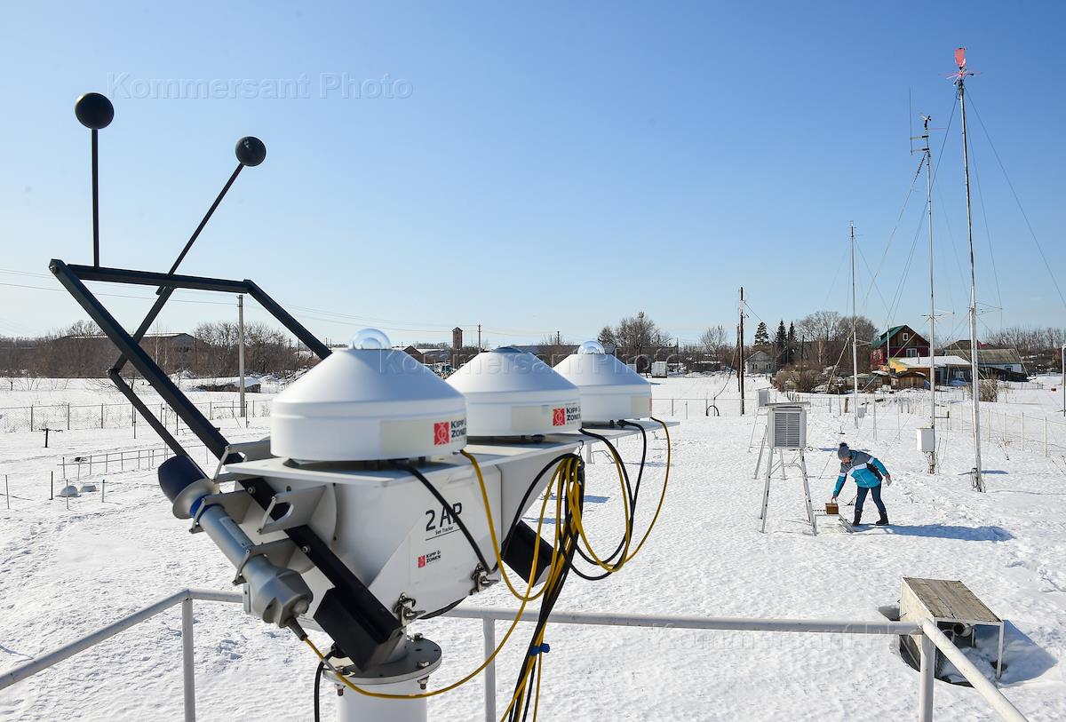 Жанровая фотография. Работа агрометеостанции "Огурцово" в поселке Элитном под Новосибирском. Прибор для измерения направления и силы ветра.