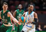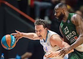 Единая лига ВТБ 2021/2022. Матч между командами УНИКС (Казань) - "Зенит" (Санкт-Петербург) на стадионе "Баскет-холл". Игрок команды "Зенит" Виталий Фридзон во время матча.