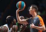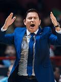 Единая лига ВТБ 2021/2022. Матч между командами УНИКС (Казань) - "Зенит" (Санкт-Петербург) на стадионе "Баскет-холл". Главный тренер команды "Зенита" Хавьер Паскуаль во время матча.