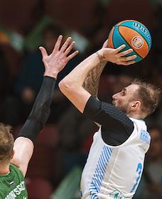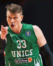 Единая лига ВТБ 2021/2022. Матч между командами УНИКС (Казань) - "Зенит" (Санкт-Петербург) на стадионе "Баскет-холл". Игрок команды УНИКС Андрей Воронцевич во время матча.