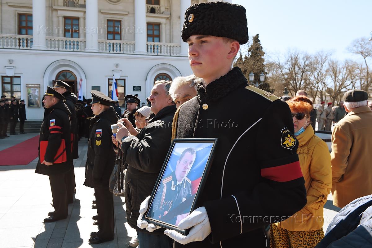Церемония прощания с заместителем командующего Черноморским флотом Андреем Палием, который погиб на территории Украины во время специальной военной операции Вооруженных Сил России на Украине, в театре Черноморского флота.