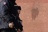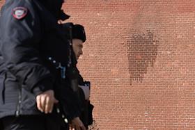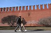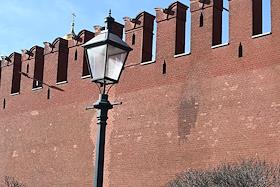 Неизвестный бросил бутылку с зажигательной смесью в стену Московского Кремля. След на кремлевской стене от зажигательной смеси со стороны Кремлевской набережной.
