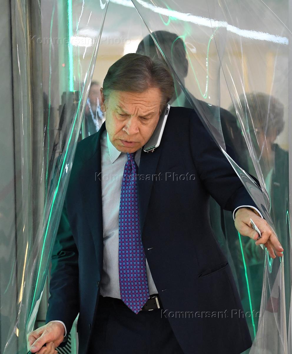 Пленарное заседание Совета Федерации России. Сенаторы перед заседанием Совета Федерации России. Председатель комитета Совета Федерации России по конституционному законодательству и государственному строительству Андрей Клишас перед началом заседания.