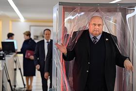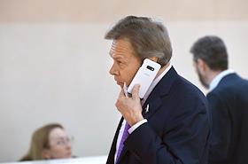 Пленарное заседание Совета Федерации (СФ) России. Сенаторы перед заседанием Совета Федерации России. Представитель в СФ России от исполнительного органа государственной власти Волгоградской области Николай Семисотов перед началом заседания.