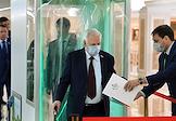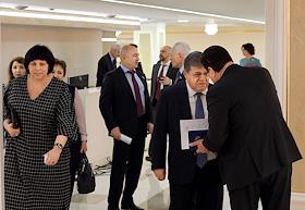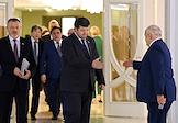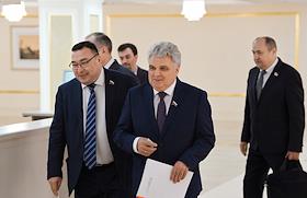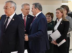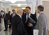Пленарное заседание Совета Федерации России. Сенаторы перед заседанием Совета Федерации России. Представитель в Совете Федерации России от законодательного органа государственной власти Республики Мордовия Петр Тултаев (в центре) перед началом заседания.