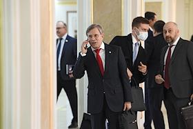 Пленарное заседание Совета Федерации России. Сенаторы перед заседанием Совета Федерации России. Председатель комитета Совета Федерации России по конституционному законодательству и государственному строительству Андрей Клишас перед началом заседания.