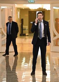 Пленарное заседание Совета Федерации России. Сенаторы перед заседанием Совета Федерации России. Представитель от законодательного (представительного) органа государственной власти Пермского края Алексей Пушков перед началом заседания.