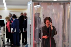 Пленарное заседание Совета Федерации России. Сенаторы перед заседанием Совета Федерации России. Жанровая фотография. Надпись на мониторе "карточка не установлена".