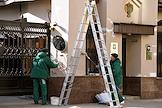 Виды Москвы. Жанровая фотография. Ремонтные работы гирлянд на улице Кузнецкий мост.