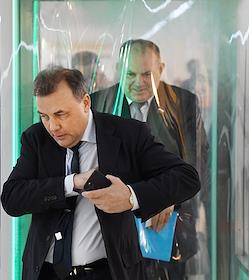 Пленарное заседание Совета Федерации России. Сенаторы перед заседанием Совета Федерации России. Представитель от исполнительного органа государственной власти Саратовской области Сергей Аренин перед началом заседания.
