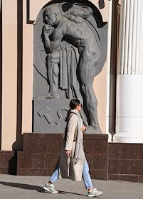 Виды Москвы. Жанровая фотография. Барельеф на стене здания Петровского пассажа.