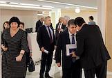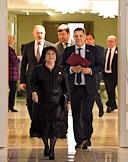 Пленарное заседание Совета Федерации России. Сенаторы перед заседанием Совета Федерации России. Представитель в Совете Федерации от Еврейской автономной республики Владимир Джабаров (второй справа) и представитель от исполнительного органа государственной власти Оренбургской области Елена Афанасьева (слева) перед началом заседания.