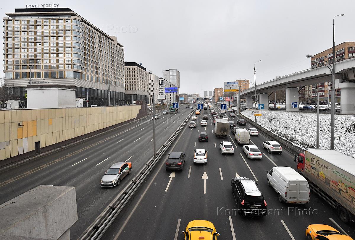 Виды Москвы. Отель Hyatt Regency Moscow Petrovsky Park на перекрестке Ленинградского проспекта и улицы Новая Башиловка. Американская компания Hyatt hotels прекратила сотрудничество с отелем Hyatt Regency Moscow Petrovsky Park в Москве. Автомобили при выезди из Бегового тоннеля.