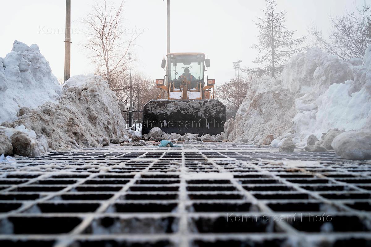 Жанровая фотография. Снегоуборочная техника во время работы на снегоплавильной станции "Черкизово-1".