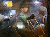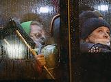 Прибытие беженцев из Украины в Казань на железнодорожный вокзал "Казань - 1". Беженцы в салоне автобуса.