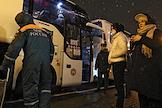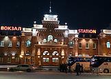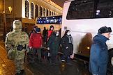 Прибытие беженцев из Украины в Казань на железнодорожный вокзал "Казань - 1". Сотрудники полиции и автобусы для беженцев перед зданием вокзала.